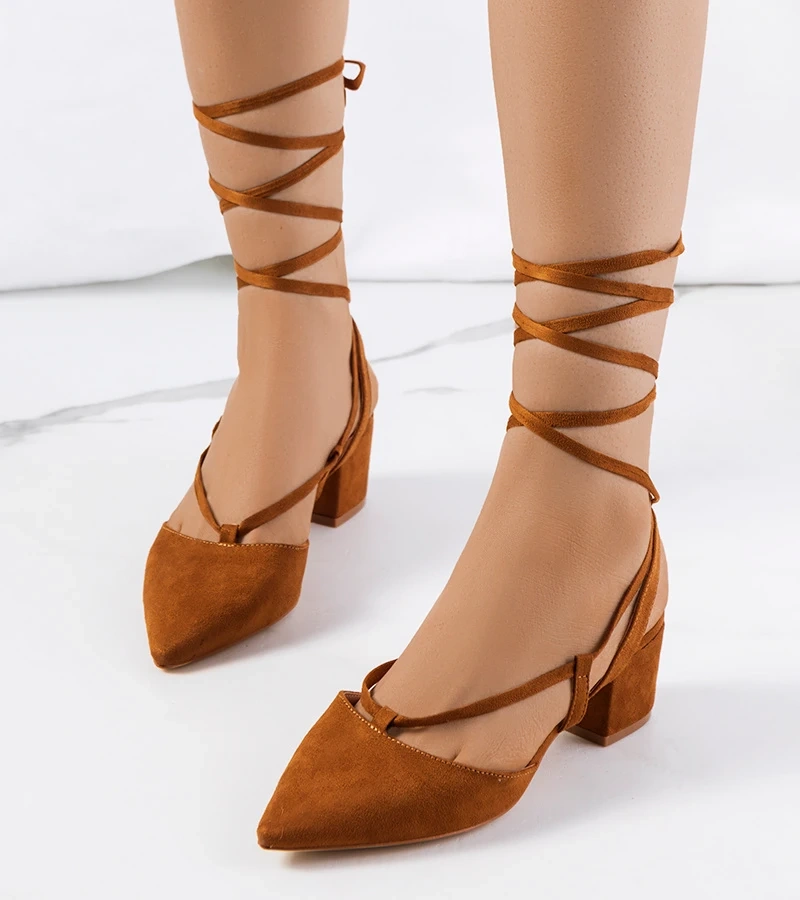 Pantofi maro cu toc masiv și vârf pătrat Irenois