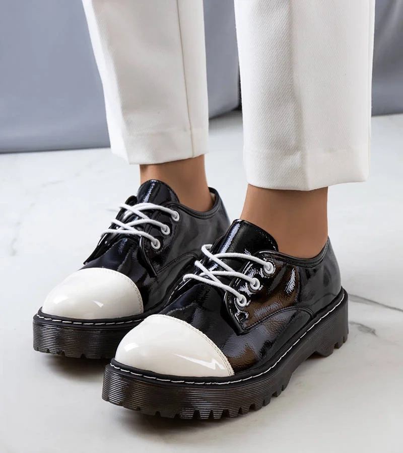 Pantofi Kuzem jumătate lăcuiți negru și galben