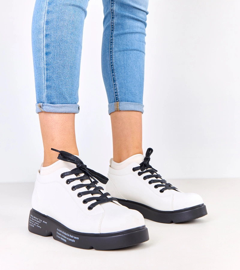 Pantofi albi cu talpă masivă decorați cu catarame Juke