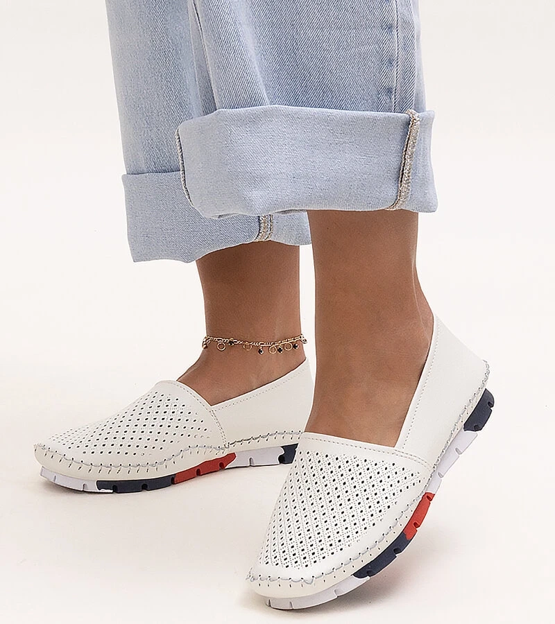 Pantofi semi-casuali bej perforați cu talpă de piele Leena