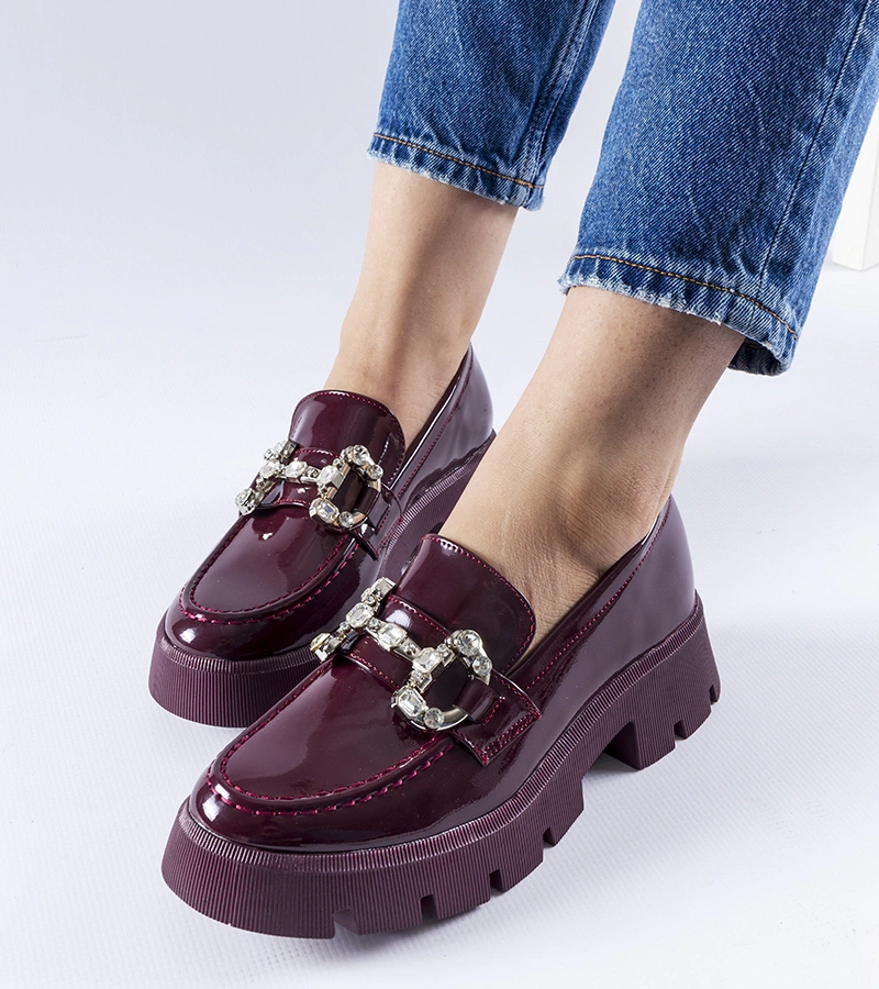 Mocasini bordo lăcuiți cu strasuri Cezet