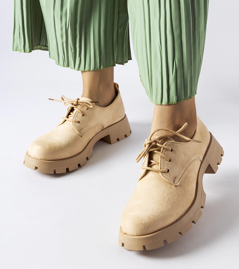Mocasini bej lăcuiți pe platforme Erin
