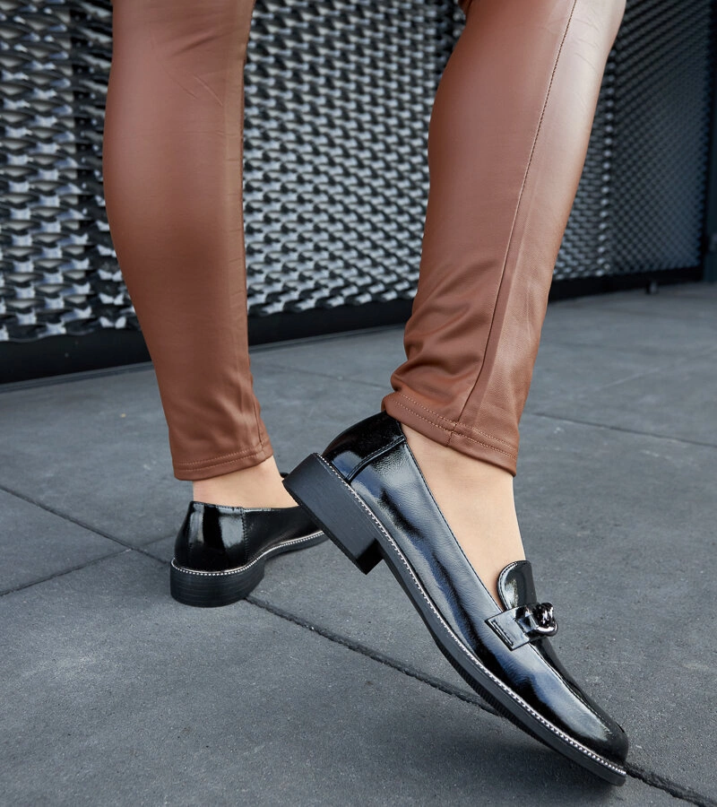 ( cantitate produse: 173 )Mocasini negri lacuite cu catarama Calabria