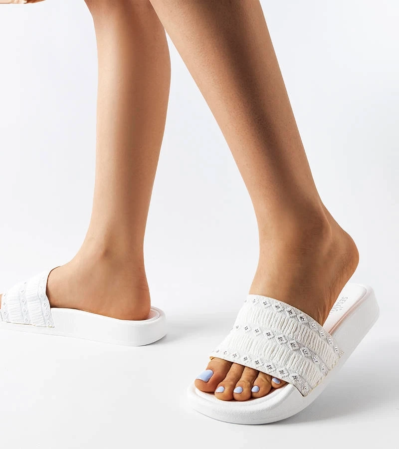 Șlapi albi decorați cu încrețitură Ernest