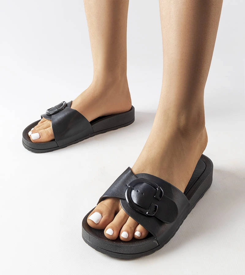 Șlapi negri Havanna pe tocuri
