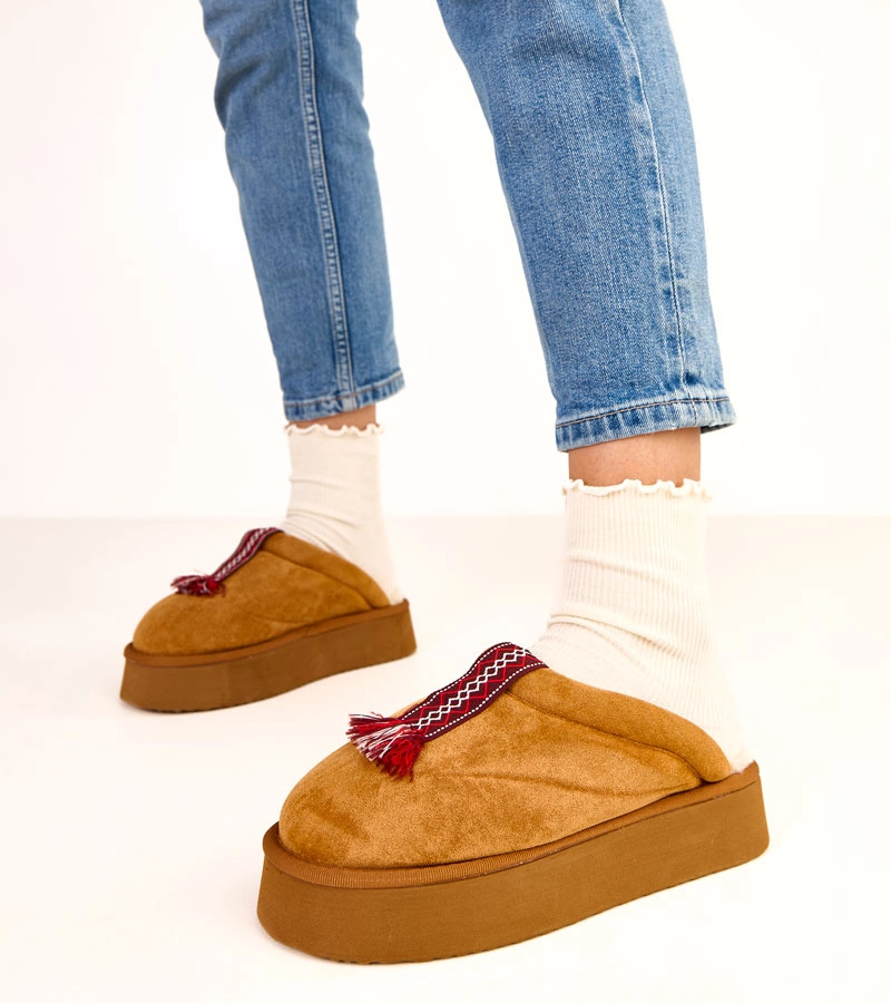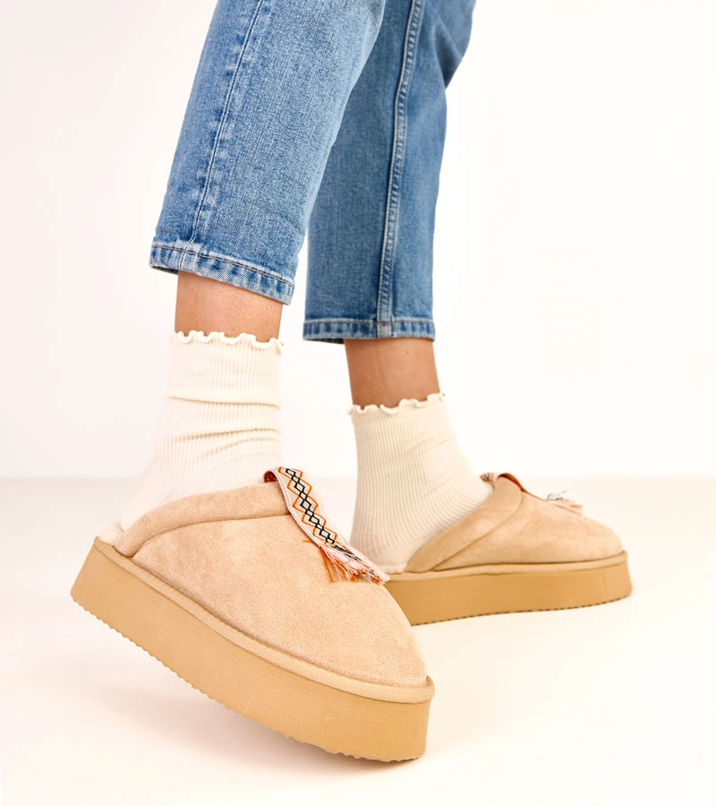 Pantofi de casă calzi bej cu fundiță Antonino