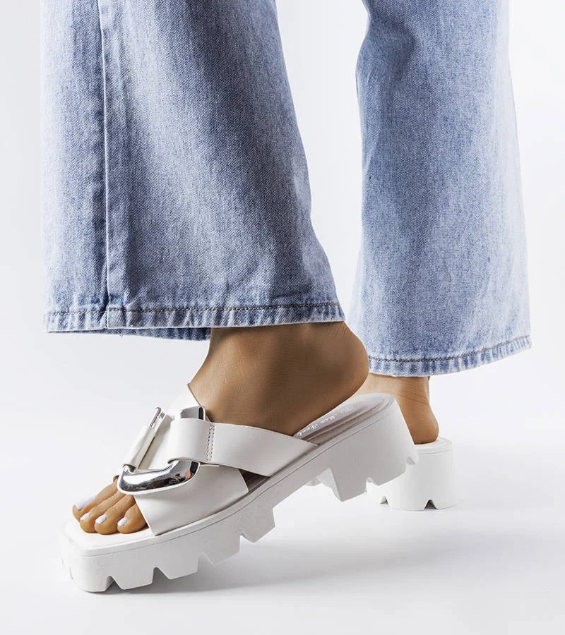 Șlapi albi cu talpă de tractor de Carceri