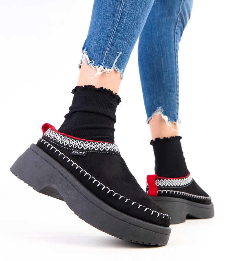 Papuci negri pe platformă cu cataramă decorativă Lunda