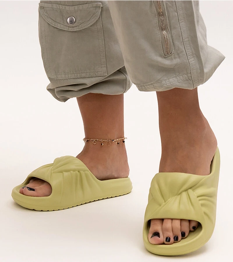 Șlapi bej înfrumusețați cu încrețitură de bulevard