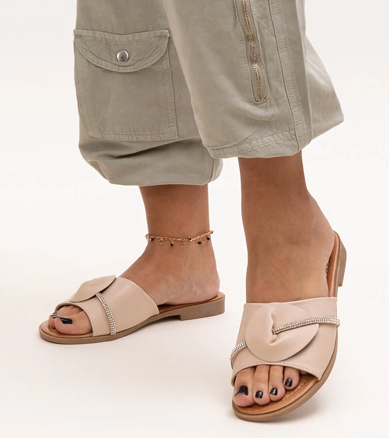 Șlapi cu toc decorati cu zirconiu de la Anbrani