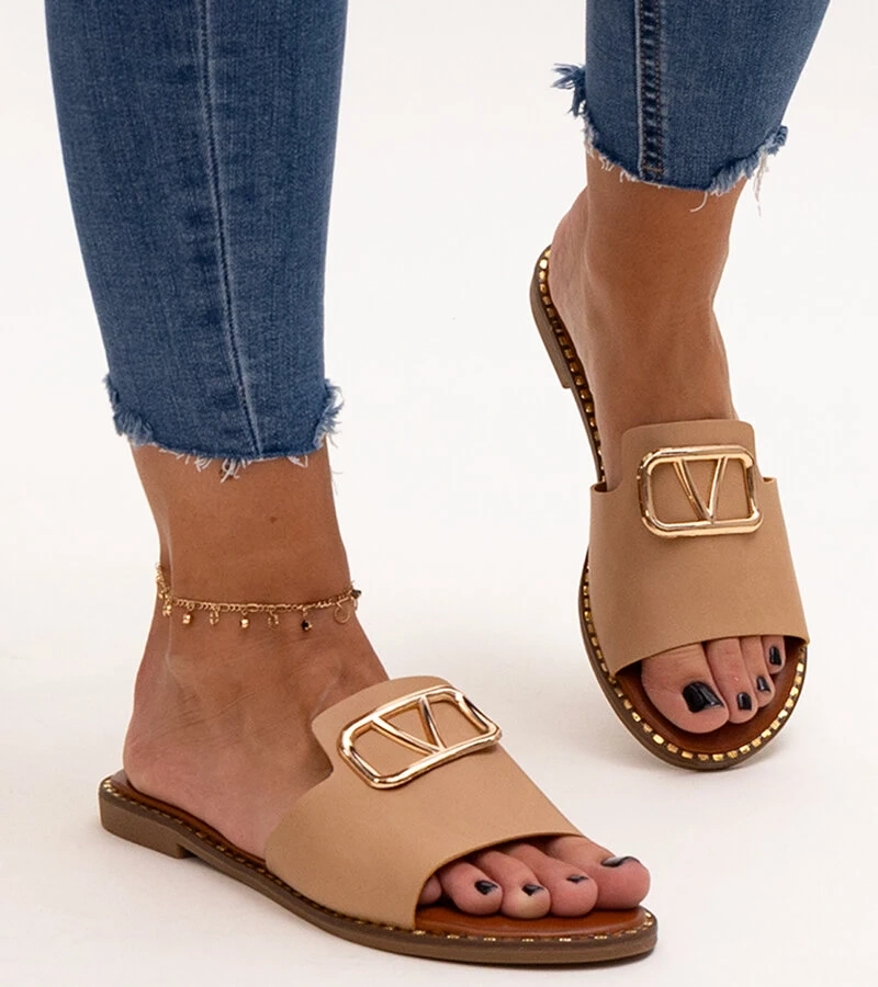 Șlapi eleganți bej cu lanț Patenaude