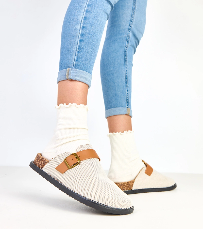 Papuci maro cu cataramă decorativă pe curea Flius