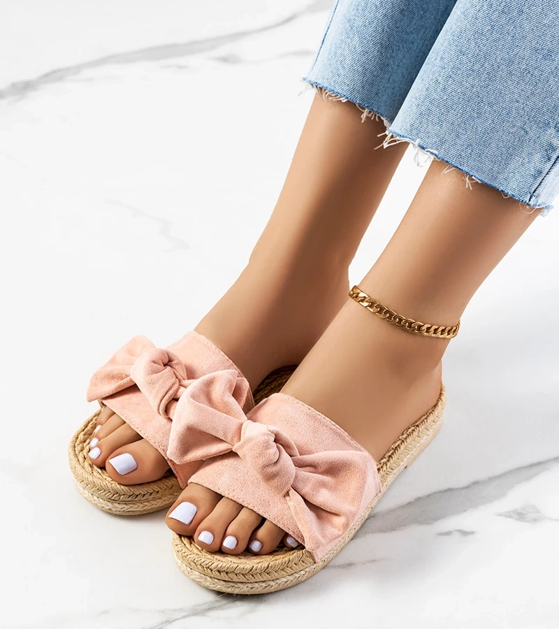 Șlapi roz cu fundiță Madelen