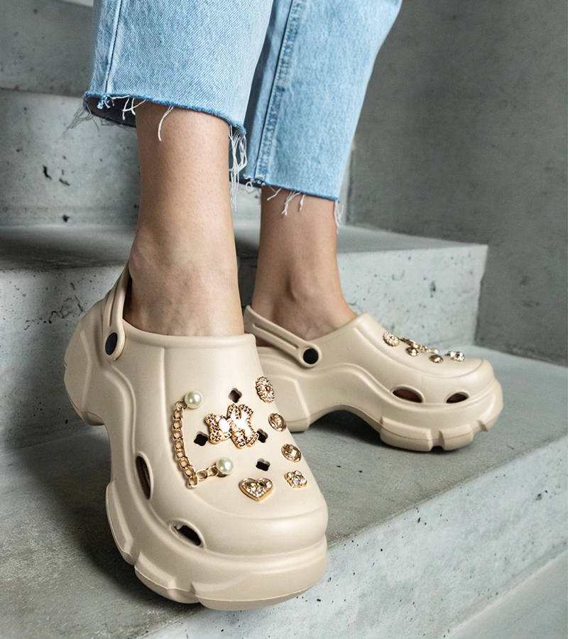 Aria papuci închiși bej-închis pe platformă decorați cu insigne