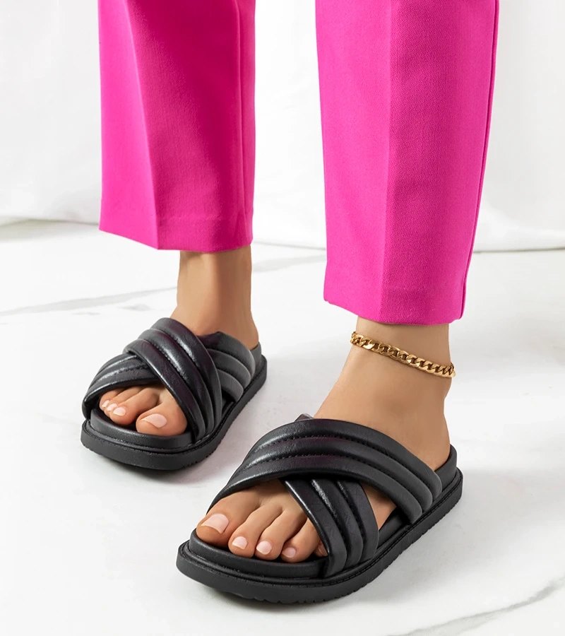 Șlapi negri cu partea superioară împletită Iren