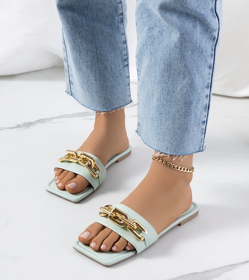 Papuci verzi cu fundiță și ornamente pe margini Favira