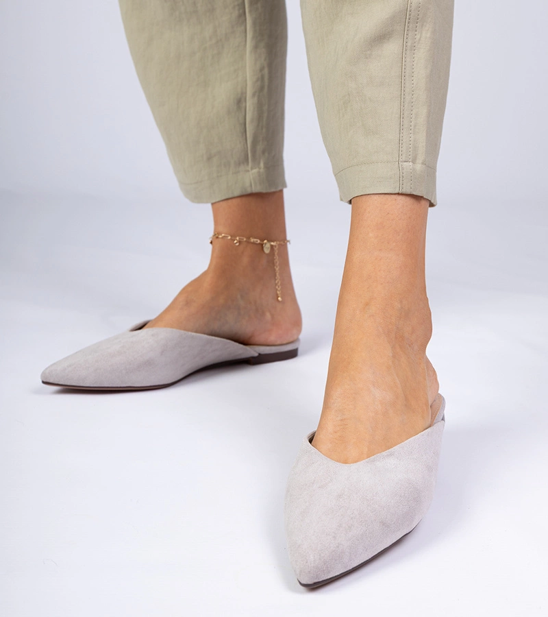 Papuci eleganți gri din piele ecologică Sarium