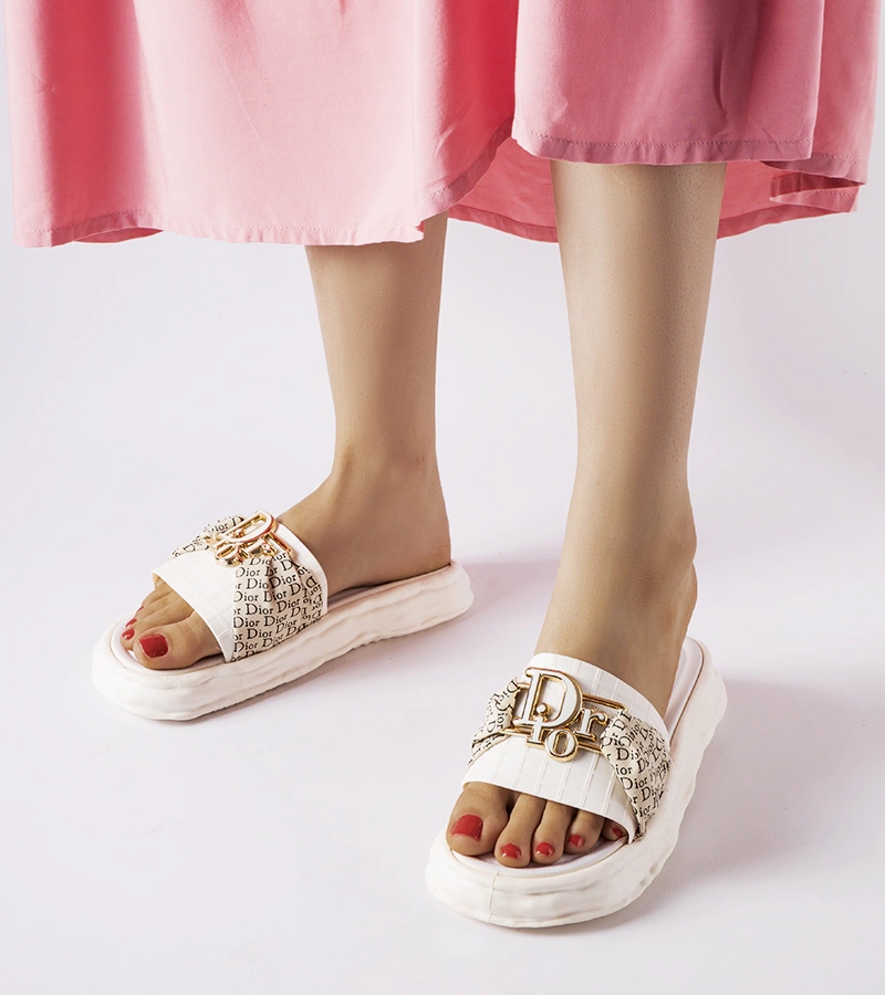 Șlapi albi pe platforme cu ornament Degna
