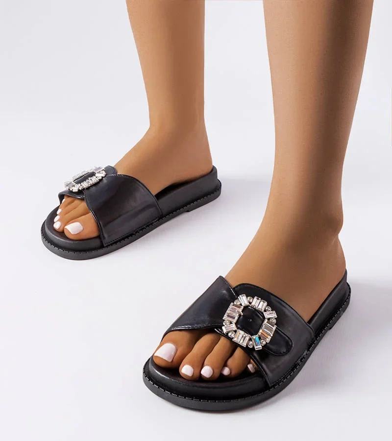 Șlapi negri decorați cu zirconii Griegsvei