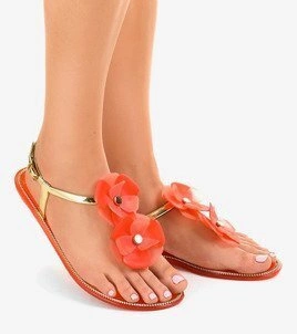 Papuci roșii cu talpă plată cu relief Sarini