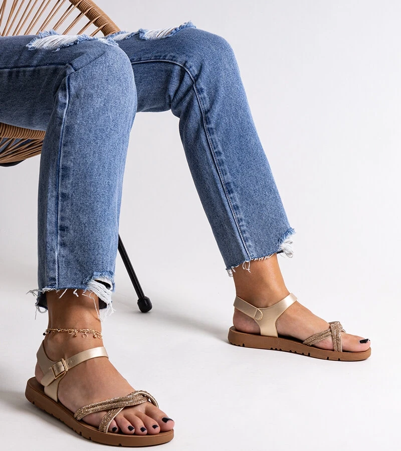 Sandale de aur decorate cu zirconii Claranna