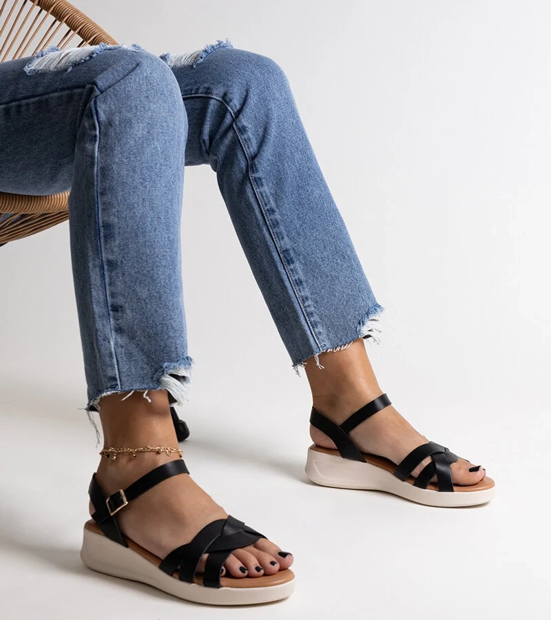 Sandale negre cu platforma joasa Saila