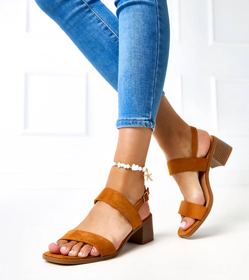 Sandale maro din piele ecologică întoarsă cu toc Dures