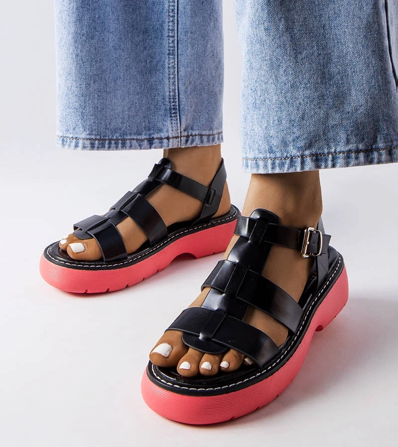 Sandale negre cu partea superioară înfrumusețată de Phillipa