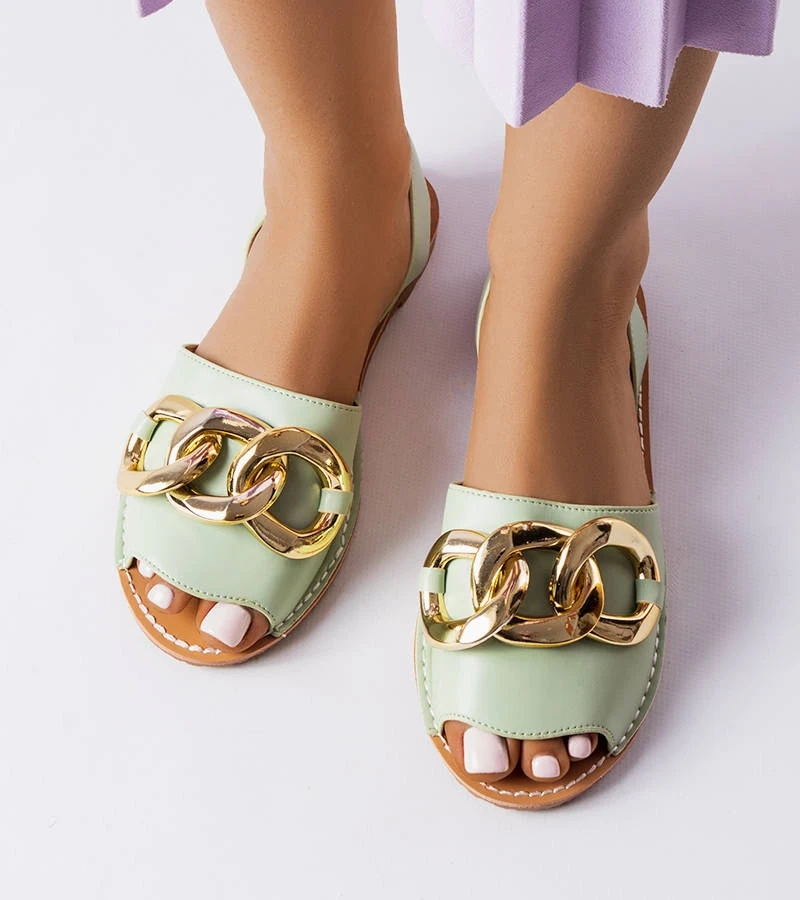 Sandale cu lanț verde Germaine cu lanț înfrumusețat
