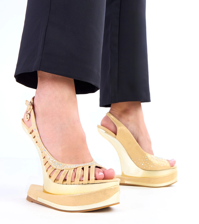 Sandale aurii cu zirconii pe toc futurist Kenni