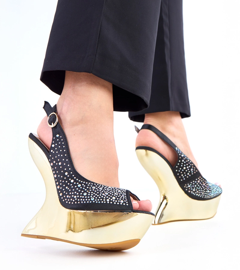 Sandale negre cu sclipici pe platformă Saluni