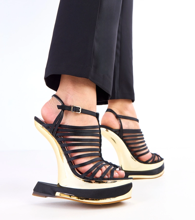 Sandale negre pe pană geometrică Kokkes