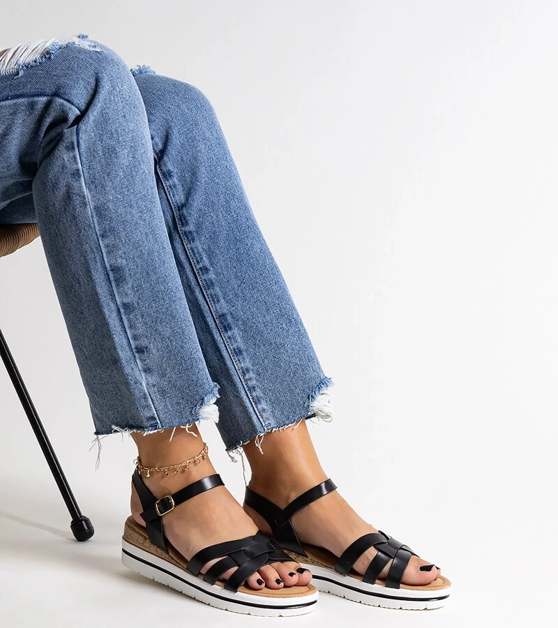 Sandale negre Gaetano cu zirconiu înfrumusețate cu zirconiu