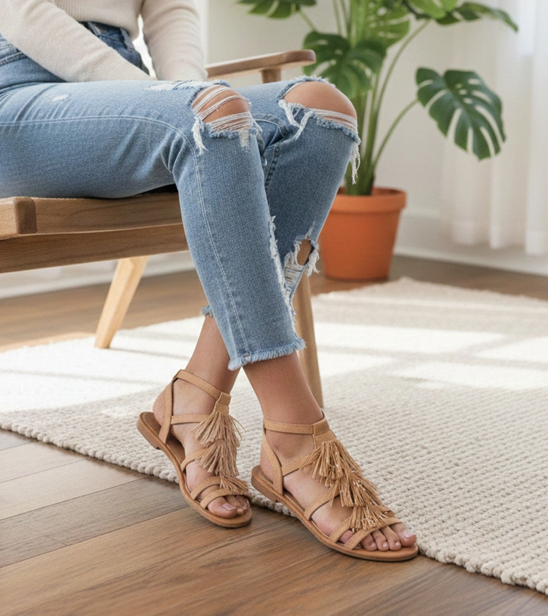 Sandale de culoare camel împodobite cu ciucuri Noronha