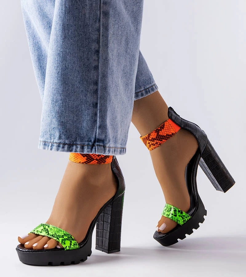 Sandale Knoxville cu imprimeu din piele de șarpe verde
