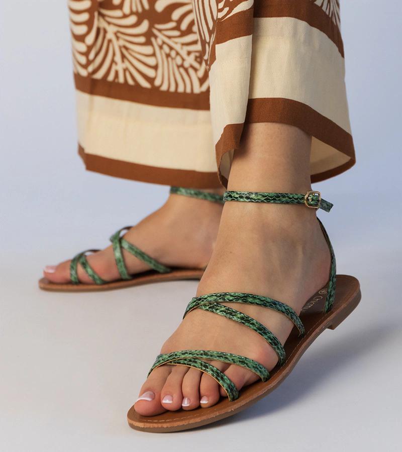 Sandale verzi de damă cu toc înalt și sclipici Sandis