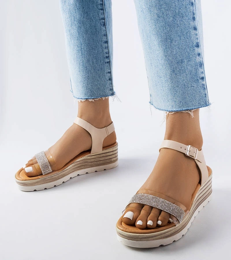 Sandale cu toc cu fundă roșie și albă "Holiday Vibes