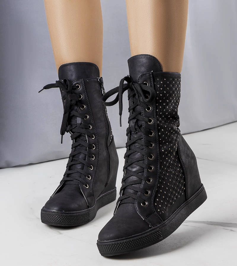 Pantofi de sport negri cu talpă Nurbika groasă