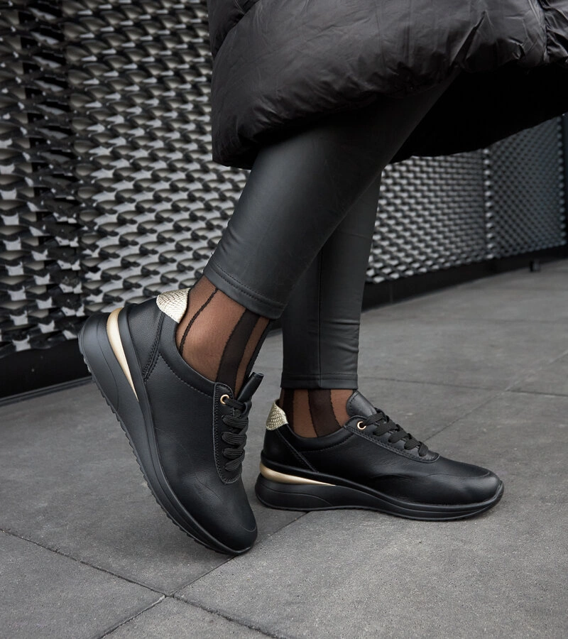 Sneakeri negri de piele cu talpă înaltă Federico.