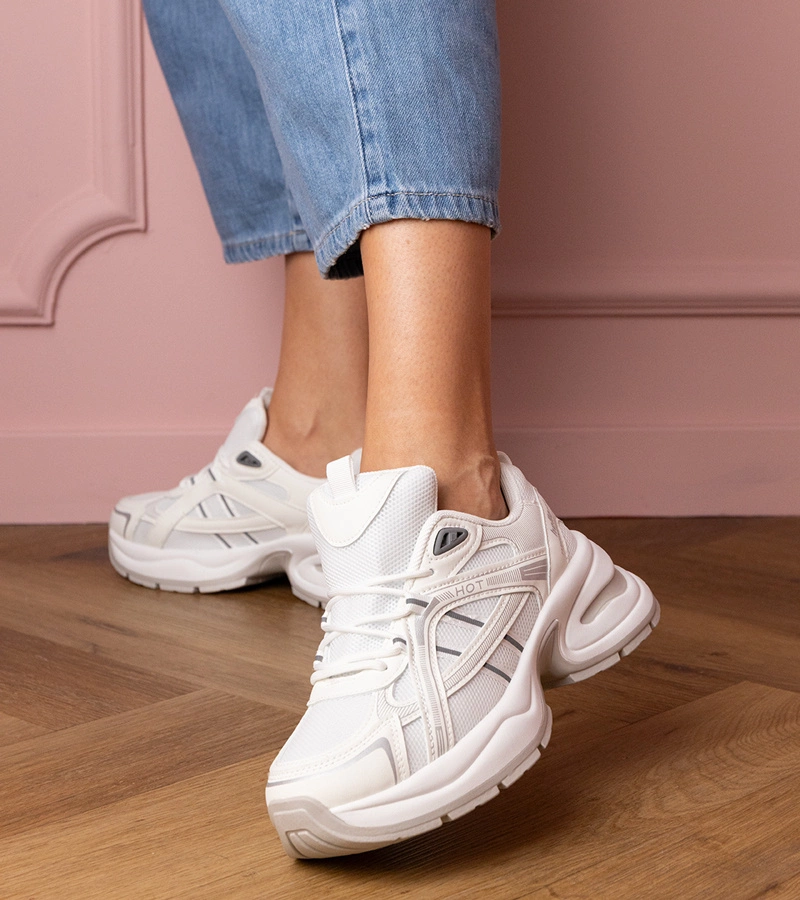 Adidași albi de damă decorați cu urs din zirconiu Karrot
