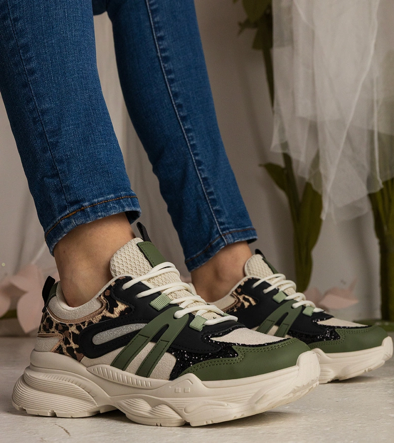 Adidași sport verzi pentru femei cu sclipici Maleda