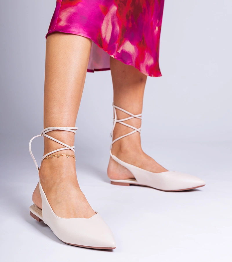 Papuci satinați bej cu fundiță și perle Perlino