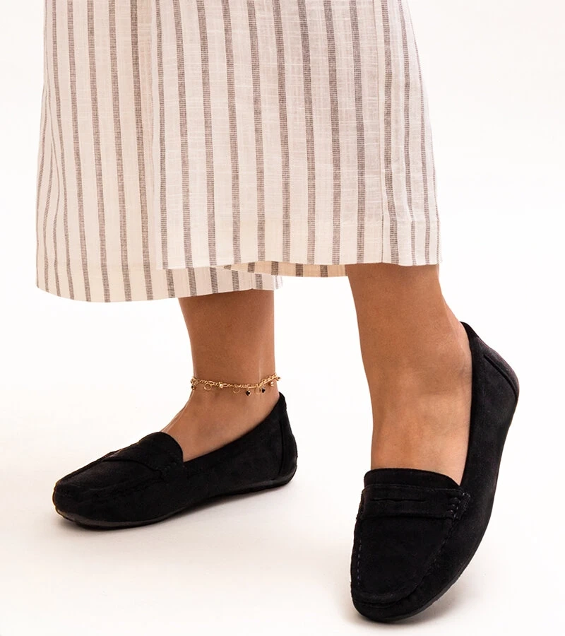 Mocasini negri cu bandă decorativă Marlisa