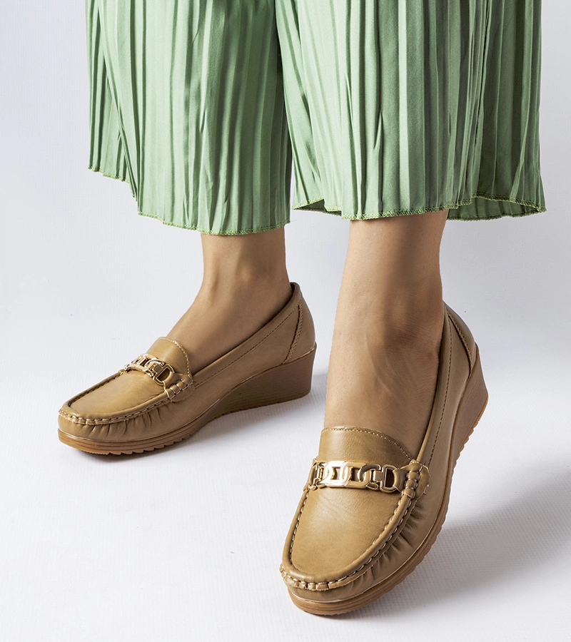 Mocasini bej pentru femei, înfrumusețați cu cataramă Piazzo