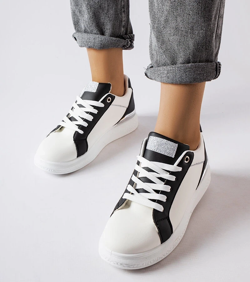 Pantofi negri și albi cu accent argintiu de Palais