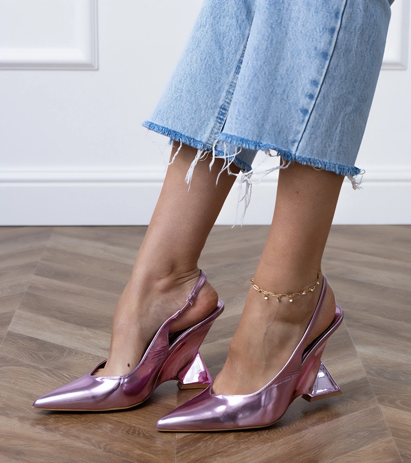 Pantofi roz Wallos pentru femei din piele ecologică întoarsă
