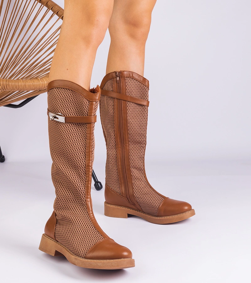 Mocasini de damă maro din piele ecologică întoarsă cu decorațiune elegantă Peletino