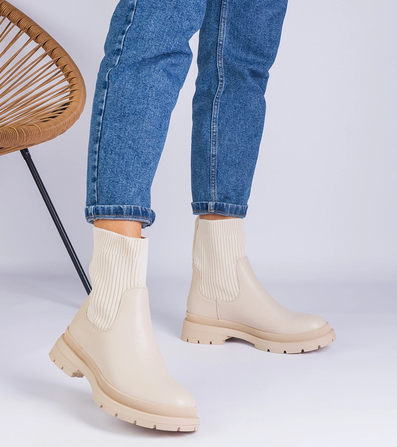 Mocasini bej din piele ecologică cu decorațiuni aurii Edelia