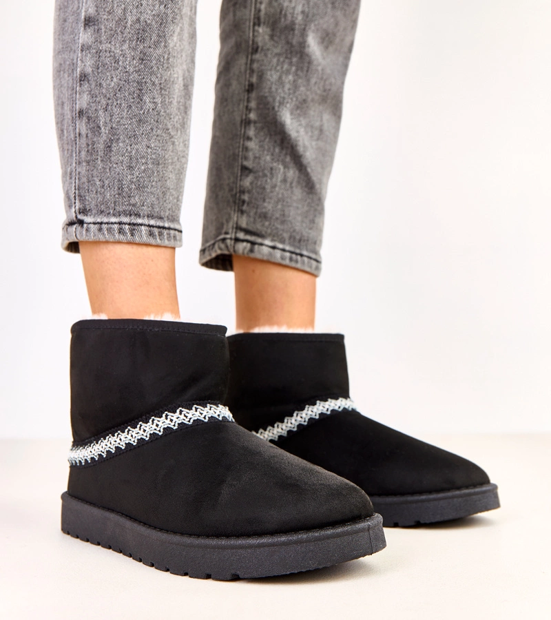 Cizme de zăpadă negre pentru femei cu șnur decorativ Temira