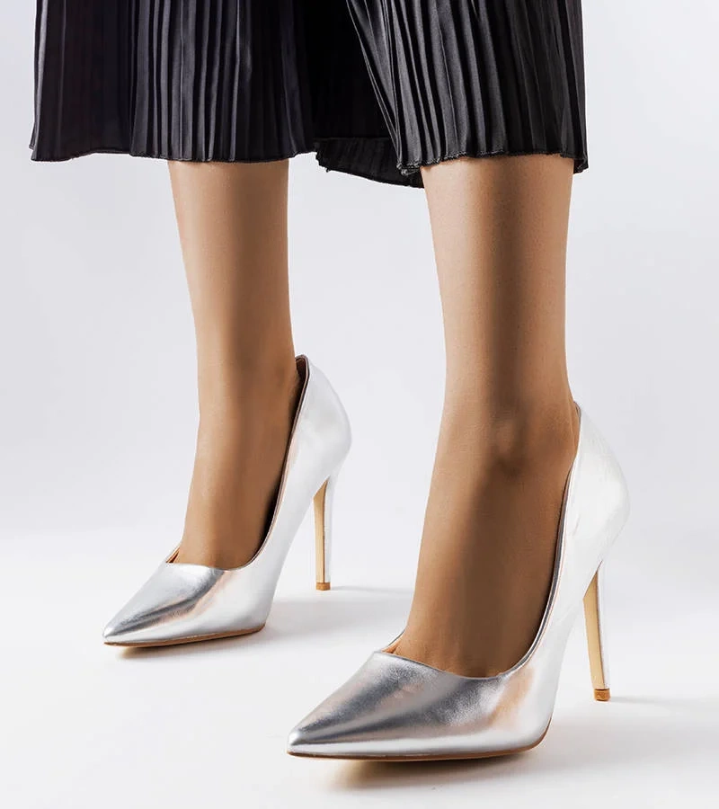 Pantofi cu toc înalt roz închis metalizat de Delis
